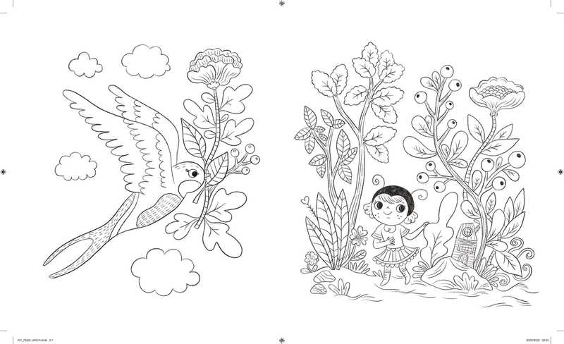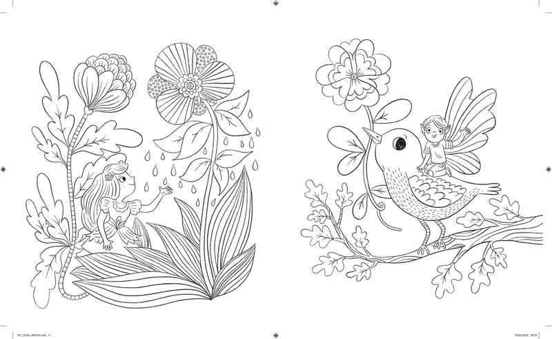 Jardins luxuriants, plantes exotiques, oiseaux, petits animaux et créatures féeriques à colorier…