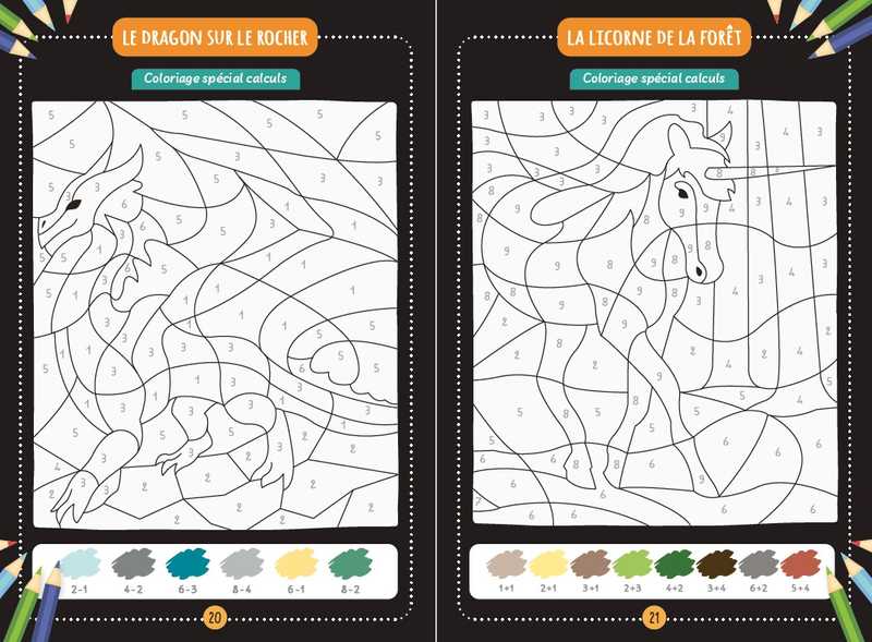 • Colorie de la bonne couleur pour découvrir ce qui se cache derrière chaque grille et faire apparaître des scènes étonnantes.