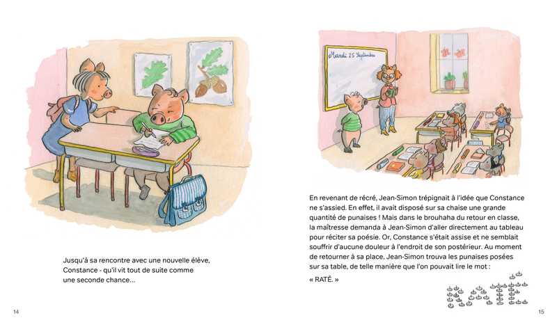 Au pays de Cochonchine, Jean-Simon est un petit cochon qui se distingue avant tout par les mauvais tours qu’il joue à ses camarades. Las de ses farces et de ses méchancetés, ses camarades finissent par lui tourner le dos. Jean-Simon rencontre alors Constance, une nouvelle élève pleine de répartie et d’humour.