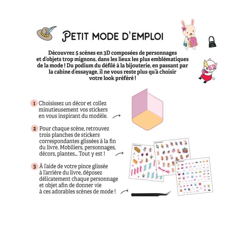 - 15 planches de stickers à coller à l’aide d’une pince