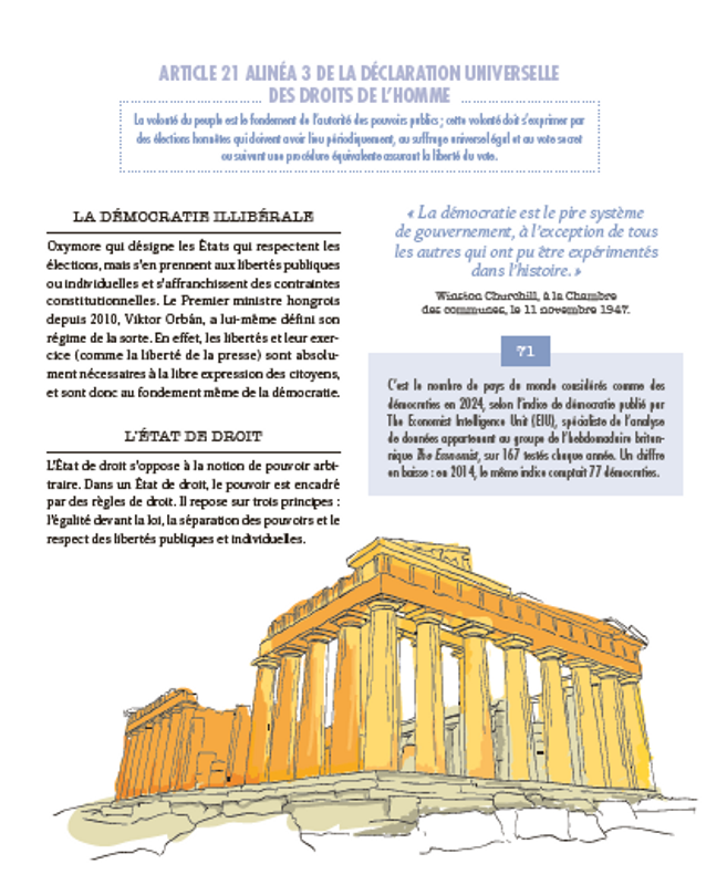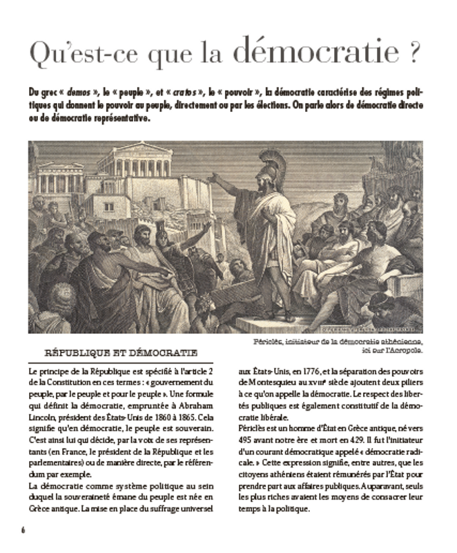 Comment les différents pouvoirs sont-ils répartis ? Quels seraient les enjeux d’une élection à la proportionnelle ? Quels pouvoirs le Sénat a-t-il réellement ? Qu’est-ce qu’une crise de régime ? La Ve République est-elle menacée ? Une autre constitution est-elle souhaitable ? Quels rôles les partenaires sociaux ont-ils ? Quelles places tiennent les institutions européennes ?
