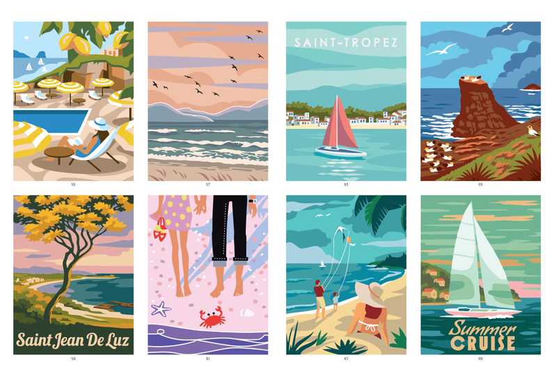Coloriez ces planches selon un nuancier de couleurs associées à des numéros : plages ensoleillées, cerfs-volants et voiliers… 40 superbes cartes postales se dévoileront à vous !