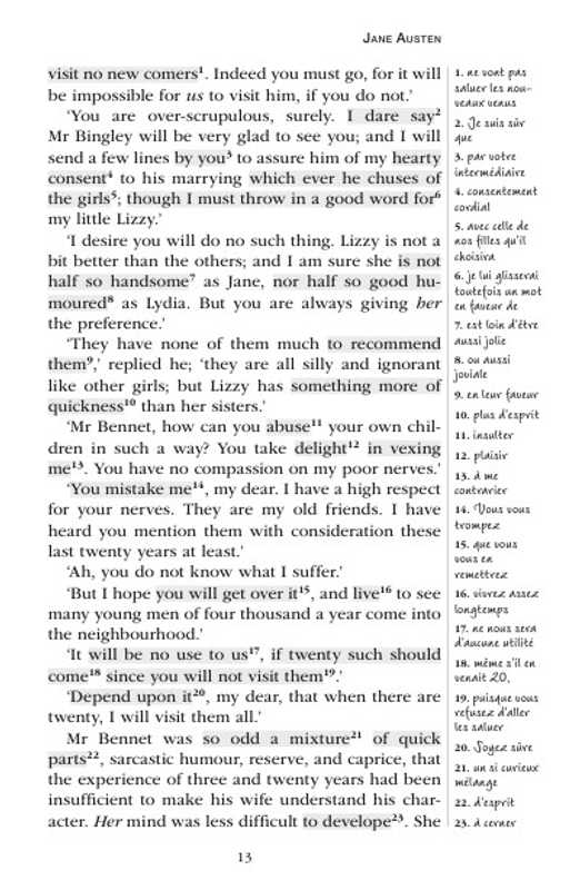 Envie de lire en anglais ? Dorénavant, c'est possible grâce à Harrap's. Redécouvrez le chef-d'oeuvre de Jane Austen en VO et en version intégrale, avec des traductions en marge pour vous aider à bien comprendre le texte. Emotion et rire garantis ! Avec Harrap's, Yes you can!