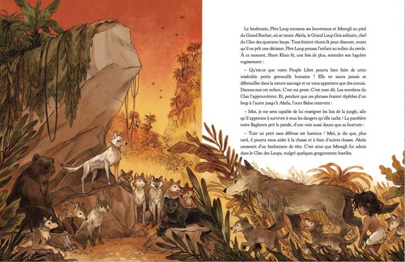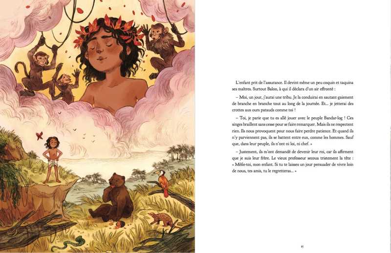 Redécouvrez les aventures de Mowgli dans cette version adaptée aux jeunes lecteurs et superbement illustrée par Sanoé !
