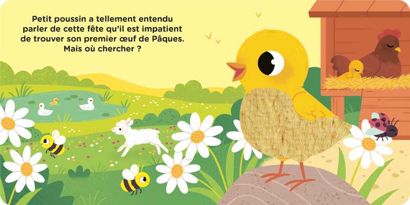 Ding, dong !C’est le jour de Pâques ! Petit poussin a tellement entendu parler de cette fête qu'il est impatient de trouver son premier œuf en chocolat. Mais où chercher ?
