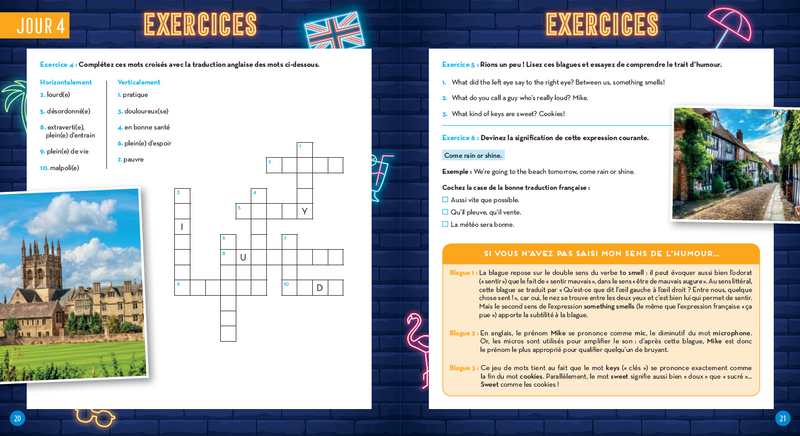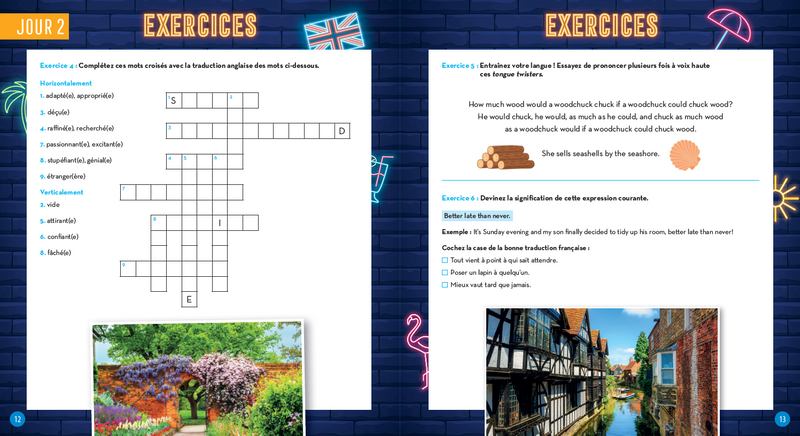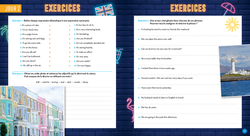 Retrouvez ce qui a fait le succès des méthodes « en 30 jours » élaborées par Léa English : des exercices variés et progressifs, des jeux autour des images et du vocabulaire… Le tout pour progresser en anglais sans effort, pendant les vacances et tout au long de l’année.