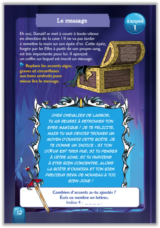 Es-tu prêt à utiliser tes connaissances en maths et en français pour aider Danaël, Jadina, Gryf, Razzia et Shimy à relever des défis et résoudre des énigmes ? Messages cryptés, remue-méninges, calculs et mots-mystères… Bienvenue dans l'aventure !
