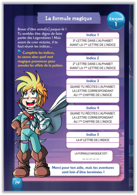 Es-tu prêt à utiliser tes connaissances en maths et en français pour aider Danaël, Jadina, Gryf, Razzia et Shimy à relever des défis et résoudre des énigmes ? Messages cryptés, remue-méninges, calculs et mots-mystères… Bienvenue dans l'aventure !