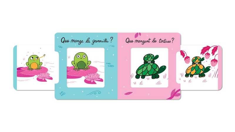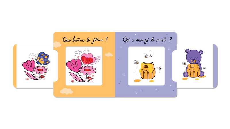Tire sur la languette pour découvrir la réponse à la devinette et des images pailletées hautes en couleurs.