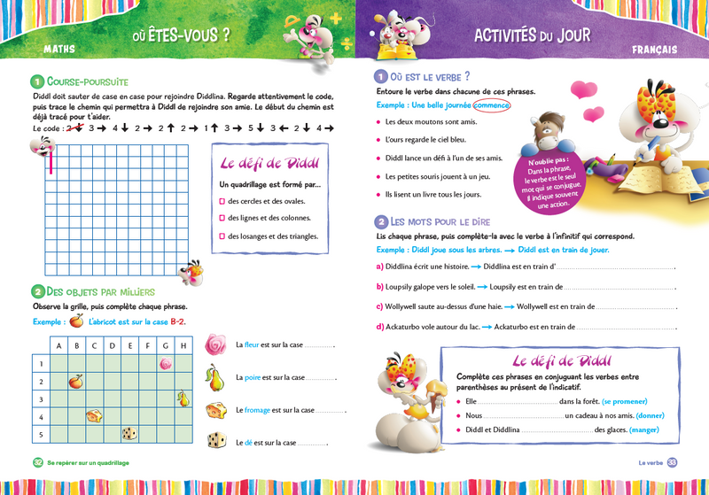 Révise en t'amusant tout le programme de français et de mathématiques du CP en compagnie de Diddl et ses amis, grâce à plus de 100 activités et leurs corrigés.