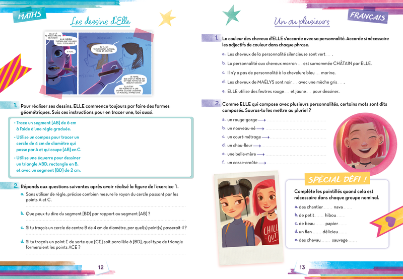 Entraîne-toi en calcul, géométrie et résolution de problèmes ainsi qu’en lecture, expression écrite et compréhension de texte, en compagnie d’ELLE et ses amis !