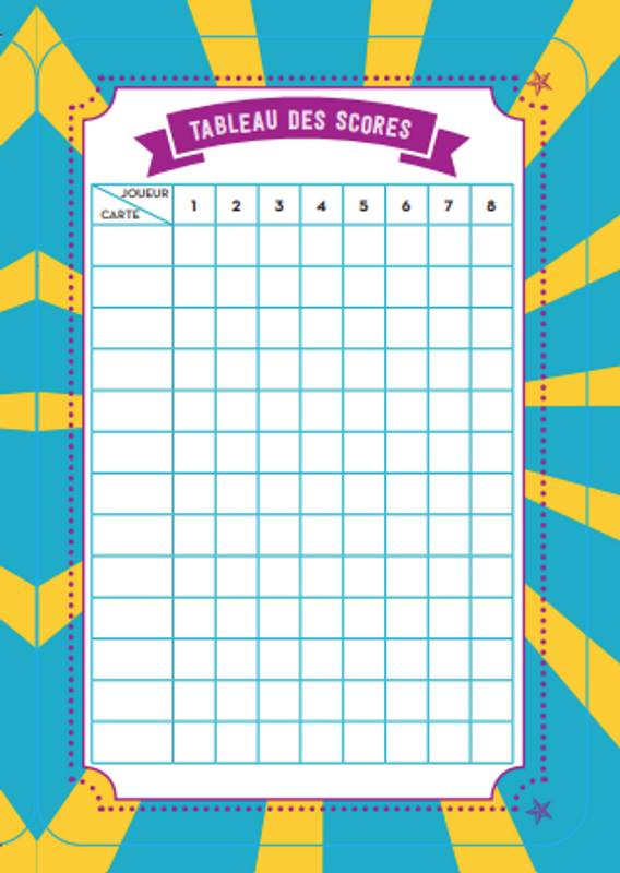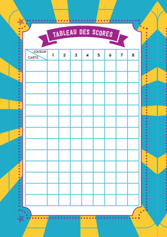 - Un livret de 16 pages contenant la règle du jeu et des tableaux permettant de compter les points.
